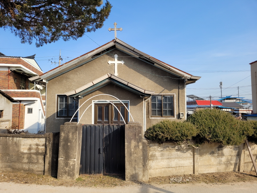골목 건너편에 1962년경 신자들이 직접 벽돌을 만들어서